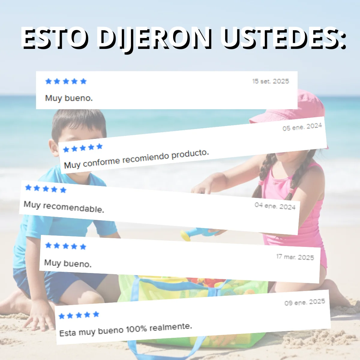 🧸 Amplio espacio para juguetes, toallas, bloqueador solar y más.