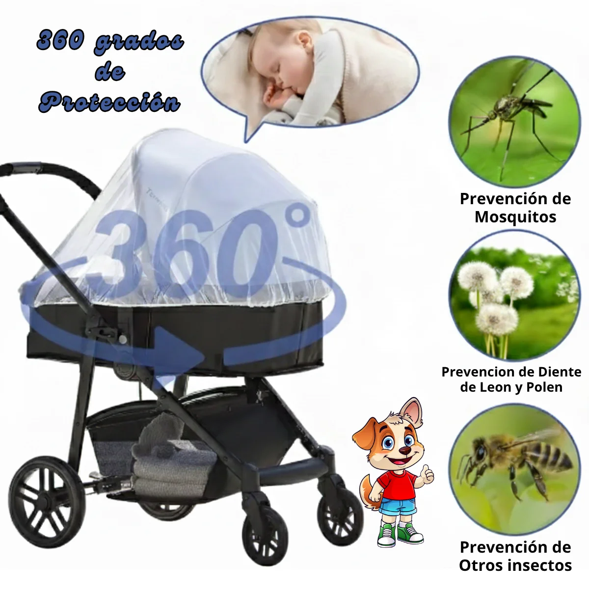Un mosquitero universal diseñado para mantener a tu bebé libre de insectos, con ventilación adecuada y fácil de colocar. Porque sus aventuras al aire libre o en casa merecen estar tranquilas y seguras. 🏞️👶